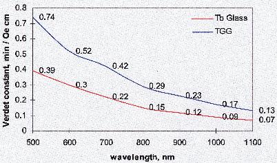 TGG (Terbium Gallium Garnet) single crystal is currently the best and widely used magneto-optical material in Faraday rotator and isolator due to its extremely high Verdet constants ( -40 rad T1 m1) in the range of 400nm-1100nm(excluding 475-500nm). By placing a rod of this material in a strong magnetic field, Faraday rotation angles of over 45° can be achieved. This allows the construction of Faraday rotators which are the principal component of Faraday isolators, devices which transmit light in only one direction. Faraday Rotator Glass Magneto Optical Glass / Faraday rotator glass materials Tb-10, Tb-12 and Tb-15 are designed for laser light flux output control in the magnetic field in visible and near-IR spectral range. It is used in manufacture of faraday rotating components based on Faraday rotation of the light polarization plane, such as optical isolators, circulators, magneto-optical modulators, fast optical switches, interleavers, laser gyroscopes, goniometric devices, magneto-optic storage and optical information process system, current measuring transducers for magnetic field measuring and high-voltage transmission line, new generation current sensors, wave guides, astrology, spaceflight control, satellite survey and other functional devices. TG-28 is characterized by a high verdet constant and a lower nonlinear refractive index to avoid selffocusing in high power laser system. Specifications of TGG crystal and Tb:Glass: